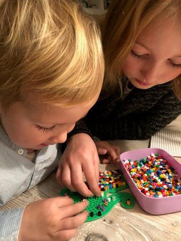 Ett bra tips för ett andrum i vardagen är att ha en 'kreativ hörna' på en bricka eller ett fat på matbordet med till exempel pärlor, tuschpennor, kritor och papper, så att ni kan leka tillsammans när ni är klara med att äta. Bonuseffekten är att barnen stannar längre vid matbordet och att samtalen ofta når en djupare nivå när vi även fysiskt fördjupar oss och förbinder oss med oss själva och varandra. Du kan prova att byta ut tuschpennor, pärlor osv. – beroende på vad ni tycker är roligt och inspirerande. Allt funkar. Konsten är att göra det attraktivt, så att ni skapar ett andrum för hela familjen.