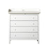 Elegant skötbyrå med 4 lådor från Oliver Furniture's Seaside-kollektion. Seaside skötbyrån förenar vacker skötfunktion med praktisk förvaring i ett, och har en enkel design med rena linjer och fina detaljer. Lådfronternas porslinsknoppar ger byrån en nostalgisk touch, och den speciella "soft-lock" funktionen säkerställer att de 4 rymliga lådorna, som glider på högkvalitativa skenor, stängs långsamt och ljudlöst. Skötplattan täcker byråns hela yta, och de generösa måtten ger gott om plats för den viktiga stunden med barnet, samtidigt som du har skötseltillbehör och ombyte lättillgängligt i de underliggande lådorna.