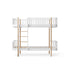 Underbar klassisk våningssäng från Oliver Furniture i en 50-talsstil som påminner om gamla spårvagnar. Våningssängen finns i flera varianter och kan med barnens växande behov omvandlas till två separata sängar eller bäddsoffor senare. Den är den perfekta lösningen för sommarhuset eller för barnrum som delas av flera barn. Våningssängen har rundade hörn och en stege fram, och finns både i vitt och i en version med ben i vitoljad ek. Är 100% dansk design, producerad i Europa. Sängen är gjord av vitoljad ek, vitlackerat björkträ och MDF E0 och E1. Mått: Sängens yttre mått inkluderar stege: L: 214 x B: 97 x H: 176 cm.