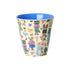 Söt barnmugg i melamin med tryck designat av Nathalie Lété. Muggen har en blå insida och motiv av blomsterglada koalor, väldressade tigrar och krokodiler som spelar tennis.