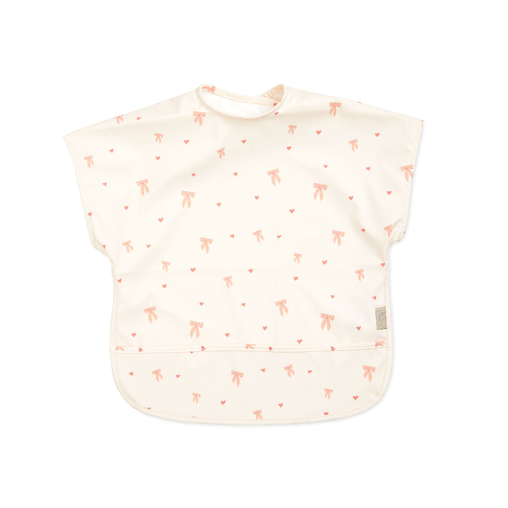 Lätt och praktiskt haklapp från Cam Cam Copenhagen i det fina Bows-mönstret. Den kortärmade modellen ger god rörelsefrihet och skyddar kläderna både vid måltider och små kreativa aktiviteter. Den vattenavvisande ytan gör haklappen lätt att torka av och rengöra, och den breda passformen säkerställer att den sitter bekvämt på barnet.