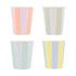 Fina pappmuggar i pastellfärger med ränder från Meri Meri. Innehåller 8 stycken som vardera rymmer 256 ml. Med dessa snygga muggar kan du duka upp för ett färgglatt barnkalas, påsklunch eller en trädgårdsfest.