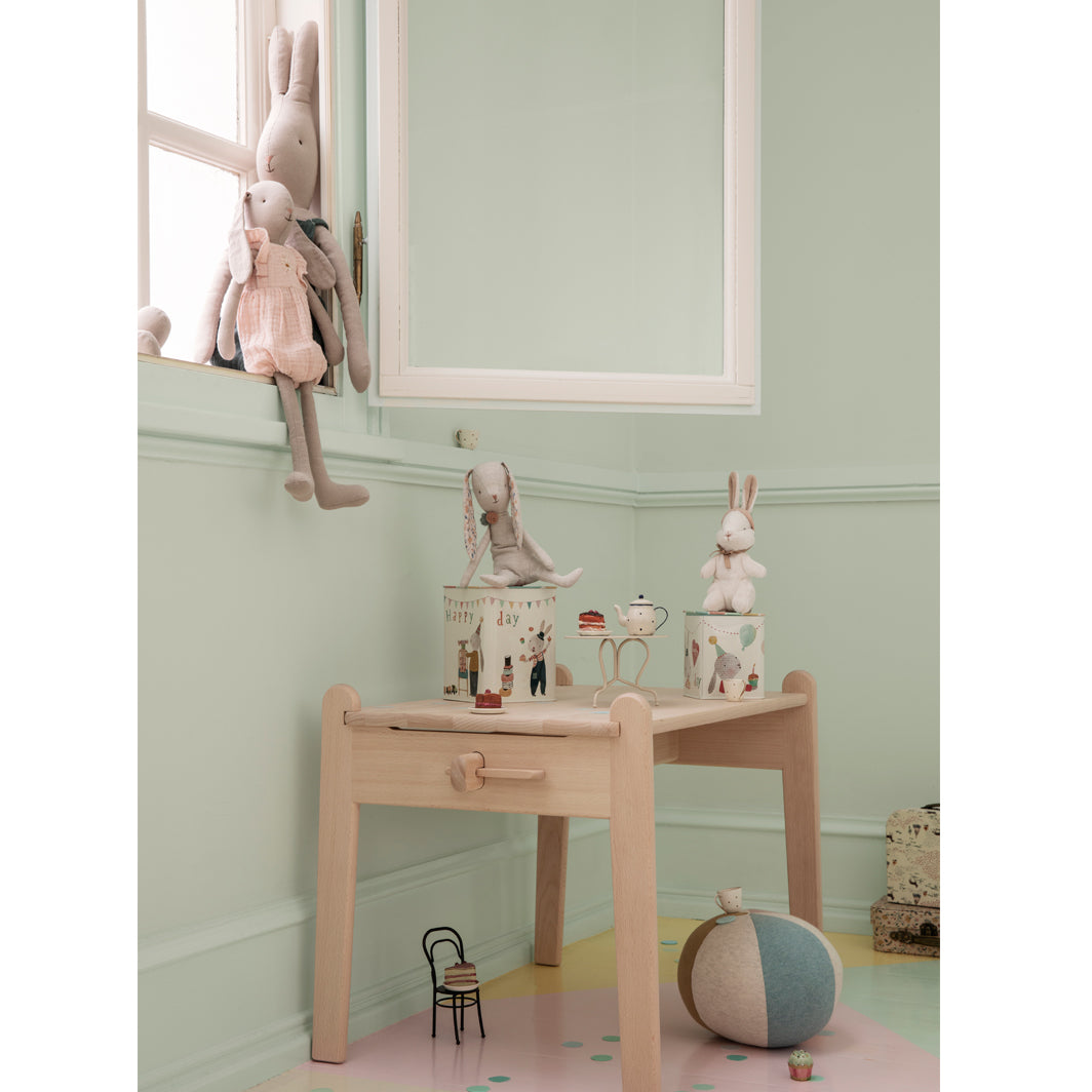 Maileg-kaniner är mjuka och söta vänner för de allra minsta. Varje kanin är fylld med kärlek och skapad med passion för att frammana leenden på både barns och vuxnas ansikten. Maileg-kaniner är tidlösa, klassiska och oumbärliga i varje barnrum.