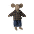 Maileg pappa mus i jeans och rutmönstrad kavaj. Den här musen passar till möbler och tillbehör i musstorlek. Komplettera gärna med fler kläder som säljs separat. Kläder i mamma/pappa-storlek passar denna mus. Från 3 år. Höjd: 15 cm.