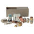 All mat som din Maileg-vän behöver. Detta set inkluderar majonnäs, mjölk, honungsburkar, korvar, 4 glasspinnar, äggkartonger, 2 läskedrycker och ost. Små variationer i målningen kan förekomma. Från 3 år.