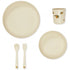 Fint matsätt från Konges Sløjd tillverkat i PLA (bioplast). Sättet består av tallrik, skål, mugg, sked och gaffel, med ett sött citrontryck. En fin gåvoidé.