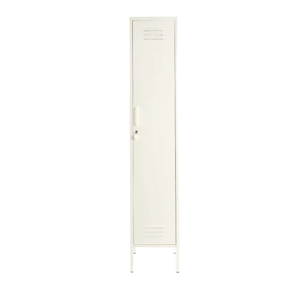 Skinny i Blush ger ett feminint och samtida uttryck. Den mjuka rosa färgen är perfekt i sovrummet, barnrummet eller som en elegant accent i vardagsrummet. Trots sin smala design rymmer skåpet mer än du kan ana – med klädstång, fyra flexibla hyllor och två krokar inuti. På utsidan hittar du handtag, lås, nyckelring och ventiler. Den matta, magnetiska ytan gör Blush både praktisk och stilsäker.