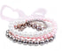 Elegant set med pärlarmband i silver, vitt och rosa. Ett riktigt charmigt set för barn som tycker om att smycka sig och känna sig extra fina.