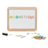 Innehåll: Tavla med kritsida och whiteboard-sida, magnetbokstäver, tavelsvamp och kritor.