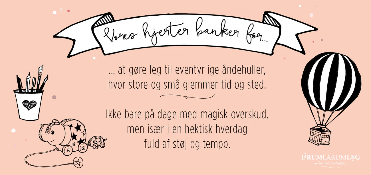 Lirum Larum Leg grundades av Anja Lytzen en vårdag 2006. Sedan starten har butiken vunnit flera priser och expanderat. Idag finns Lirum Larum Leg både i Danmark och i Norge, och tillsammans med våra medarbetare, kunder, leverantörer, samarbetspartners, följare och stödjare gläds vi varje dag åt att få bidra till att göra barnens liv magiskt!