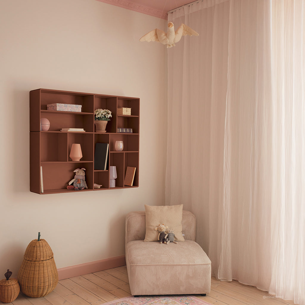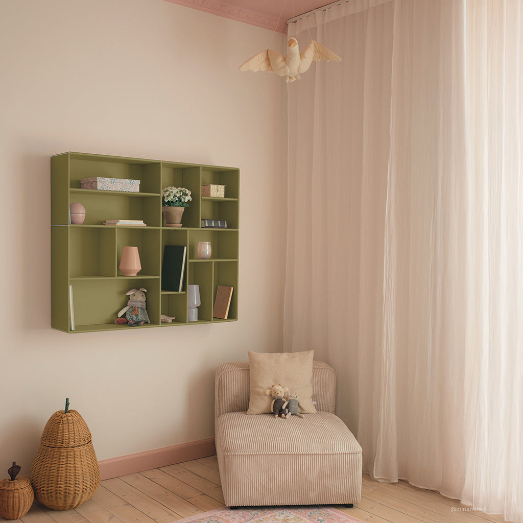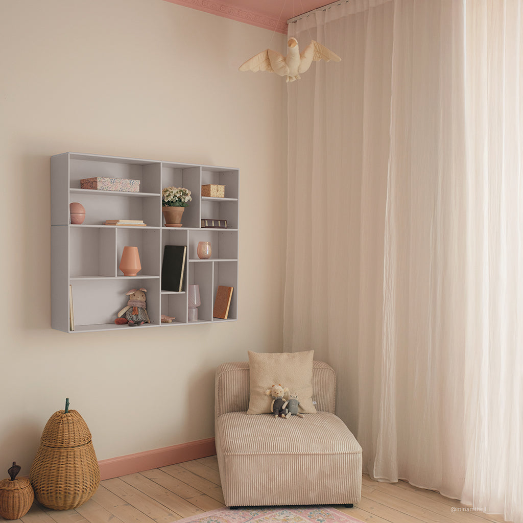 Helena väggreol från By Aulum är en stilren sättekassereol i stor storlek från Quadrant-serien. Med sina många fack erbjuder reolen gott om plats för förvaring av böcker, leksaker och personliga föremål.